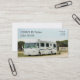 Large white RV coach with empty car dolly. This RV business card could be used by RV campgrounds, sales or repair shops.