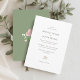 Whimsical and chic. This white and sage green wedding invitation features a lovely blush pink watercolor floral illustration, alongside a contemporary set of fonts. Included at the back is a lovely floral rose illustration and optional wedding website address.