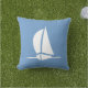 White sailboat on blue | Nautical Stripes on back Cushion