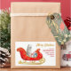 On these Holiday decorative stickers, a white Samoyed dog sits in a pretty red and gold decorative sleigh. Beside the dog sits gift packages tied with colourful bows. The gold script text at the right says "MERRY CHRISTMAS" and your custom text is in red. Perfect for your Christmas correspondence or gift packages! There are many other breed images and products at Dog Village.