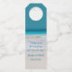 Beach themed wedding bottle hanger done with a photograph of a white sandy beach and aqua water. Personalise the custom text to read what you want. Makes great wine bottle favour tags for your wedding guests.