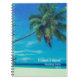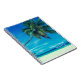 A custom notebook for wedding plans, or personalised with whatever text suits your occasion / needs designed with a tropical themed photo featuring coconut palms stretching out across a secluded white sandy beach. Turquoise waters and an azure blue sky in the background.