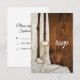 Customise the charming White Satin and Horse Bit Country Wedding Response Card with your marriage reply date. These informal yet elegant custom western r.s.v.p. cards feature a quaint digitally enhanced equestrian photograph of white silk, pearl necklace, horse bit and leather reins with a rustic brown weathered barn wood background.