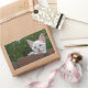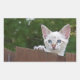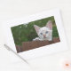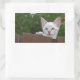 White Savannah Cat Rectangle Sticker. Solid Coloured Background ready for you to add your own images and text.