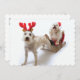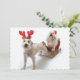 White dog with antlers pulling sled with dog xmas