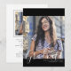This trendy casual graduation announcement features two photos of the college or high school graduate. Casual, modern white script appears on front photo overlay and black border along with a photo of the graduate on the back with simple black font for the announcement. You can adjust the wording on the back of the card to make this either a simple graduation announcement, or a grad party invitation. A stylish and simple design for this year's graduation!