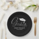 White Script Graduation Cap Black Paper Plate