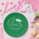 Green party paper plates feature the word "Graduate," the class year, your name and the name of your school in chic lettering on any colour background, we show green. MORE colours and MATCHING items in our collection.