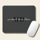 White Script Initial Monogram & Black Minimal Mouse Pad