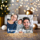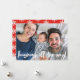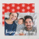 This modern holiday photo card features white calligraphy script over a full-bleed photo. This design accommodates a single, horizontal photo on the front of the card. The greeting on the front says "laughing all the way". On the reverse side you will find a festive red and white snowflake pattern which can be removed or changed. You can also add another photo or text to the back by selecting the "customise further" option.