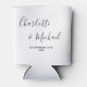 Make your big day unforgettable with Custom White Script Wedding Can Coolers. These elegant favours display your names and wedding date with chic simplicity.