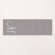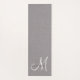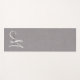 Personalised black and white monogrammed stylish yoga mat with a script font design on a printed faux grey linen photo effect background. Trendy typographic style.