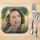 Chic graduation party paper plates featuring the graduate's photo overlayed with "Graduate" in an elegant white script and their name and class year in simple modern white typography.