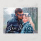This is a simple Save the Date post card that lets your photograph take centre stage! At the bottom of your photo is stylised text in white that says SAVE the DATE. Below that are two custom text fields, also in white. Small details with big impact! The back of the card has plenty of room for your custom text. Looks great with either B&W or colour photographs.