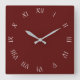 White Script Roman Numbers On Red wccn Square Wall Clock