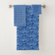 White Sea Shell Pattern Over Blue Beach House Bath Towel Set