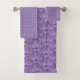 White Sea Shell Pattern Over Purple Beach House Bath Towel Set
