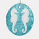 White Seahorses Aqua Sea Glass Personalise Ceramic Tree Decoration