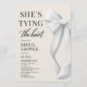 Celebrate the bride-to-be with this elegant “She’s Tying the Knot” bridal shower invitation featuring a soft white satin bow and refined modern typography. The clean layout and light neutral background create a timeless, elevated look perfect for classic, minimalist, or ribbon-themed celebrations.