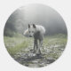 White Siberian Husky Classic Round Sticker. White Siberian Husky in the forest. Photo by Marek Szturc.
