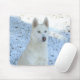 Mousepad with photograph of white Siberian husky with piercing blue eyes. Very unique.