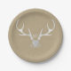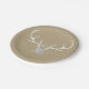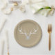 White Silver Antlers & Brown Paper Rustic Wedding Plates. Customise with any text. Matching items are available.