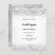 An invitation for an elegant 21th (or any age) birthday party. A chic white background on the front. Decorated with faux silver confetti. Personalise and add a name and party details. The name is written with a hand lettered style script.