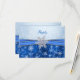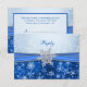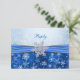 Silver snowflake on a blue snowflakes background decorated with printed image of blue ribbon RSVP Invitation