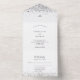 White silver glitter sparkles elegant wedding all in one invitation