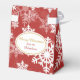 On this elegant gift box, a pretty pattern of decorative white and silver snowflakes is printed on a Holiday red background. A gold framed oval banner holds your customised text in matching gold and red on the back. Make it say whatever you'd like! This bag is elegant enough for weddings, holiday gifts, or any event. Thanks to MilachiDesigns on etsy.com for the pattern used in this design.