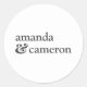 White Simple Bride and Groom Names Logo Classic Round Sticker