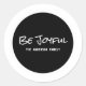 Trendy and modern Simple Script Be Joyful Holiday Stickers with a white text design with the words "Be Joyful" in a bold handwritten script. These elegant typography design stickers can be easily customised with your family name or other text. Find more customisation options by clicking Customise It.