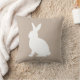 White Sitting Bunny Silhouette On Beige Easter Cushion