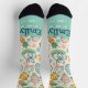 A white pattern-based sock design with cute Easter object. Great for Easter events. Just customise the name, personalise it, and gift it.