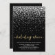 Modern holiday party invitation featuring falling snow, whimsical script, stars and snowflakes. Matching items and other colours are available.