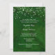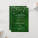 This elegant yet modern wedding invitation suite has a forest green watercolor background with a scattering of white snow cascading from the top and white text, perfect for a winter or Christmas-themed wedding.
