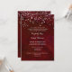 This elegant yet modern wedding invitation suite has a dark red watercolor background with a scattering of white snow cascading from the top and white text, perfect for a winter or Christmas-themed wedding.