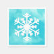 Paper napkins in a white snowflake on a soft sky blue watercolor background