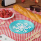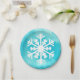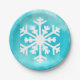 Paper plates in a white snowflake on a soft sky blue watercolor background