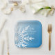 Personalise the festive White Blue Snowflake on Blue Winter Wedding Paper Plates with the names of the bride and groom and date of their December, January or February winter wonderland theme bridal shower or marriage. These elegant custom wintery disposable paper plates feature an intricate white snowflake design with a gradient blue background.