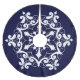 Beautiful Christmas tree skirt with a white snowflake on a dark blue background.