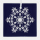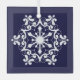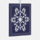 Beautiful glass Christmas ornament with a white snowflake on a dark blue background.