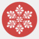 This sticker with a holiday red background and white snowflake adds a touch of Christmas cheer to outgoing mail or craft projects.