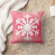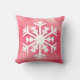 Throw pillow in a white snowflake silhouette on a soft coral pink watercolor background
