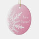 White Snowflake on Pink Winter Engagement Ceramic Tree Decoration