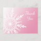 Customise the festive White Snowflake on Pink Winter Thank You Postcard with your own personal message of appreciation and gratitude. Suitable to use for gifts received after a classy December, January or February birthday, bridal shower, wedding or holiday. This elegant custom wintery thank you note postcard features an intricate white snowflake design on a gradient pink background.