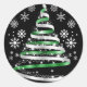White Snowflake Silver Green Ribbon Christmas Tree Classic Round Sticker