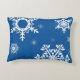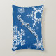 The White Snowflakes Blue Pillow features white snowflakes scattered across a blue background, with the text "Merry Christmas." Makes a beautiful accent piece to your home for the holidays. Also makes a great gift. Customise the text as desired. Be sure to check out the matching Christmas tree skirt and other home accents.