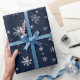 White Snowflakes on a Dark Blue Background Wrapping Paper