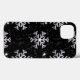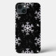 An elegant Christmas image of white snowflakes and stars set against a dramatic black background.